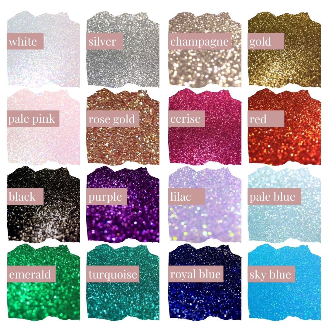 The choices with CAPRI design are endless. You can add silver, champagne or gold glitter to emphasize the luxury or just choose glitter that is the same colour as ribbon to gain diversity of factures. On the other hand using two different colours for glitter and bow makes your stationery even more eye-catching. Additionally you can add a hint of a third colour or even more sparkle with embellishment.