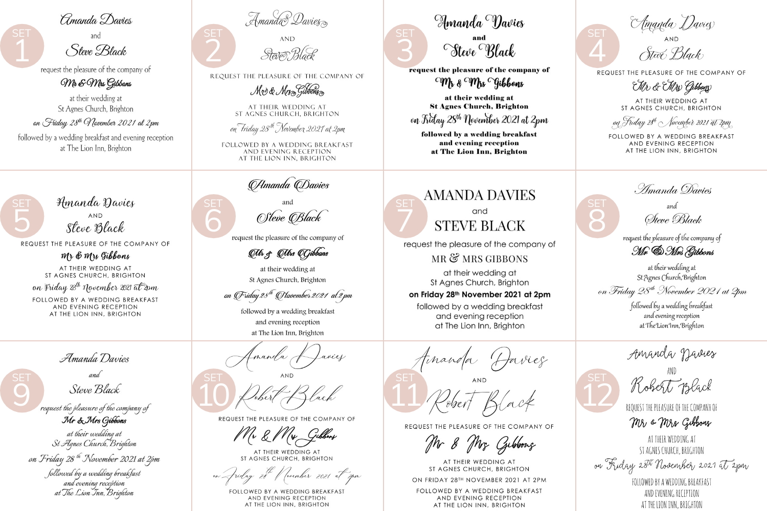 If you have any doubts with colours choice or wording, we’ll be more than happy discuss all options and help you choose the right one to create your dream invitations.